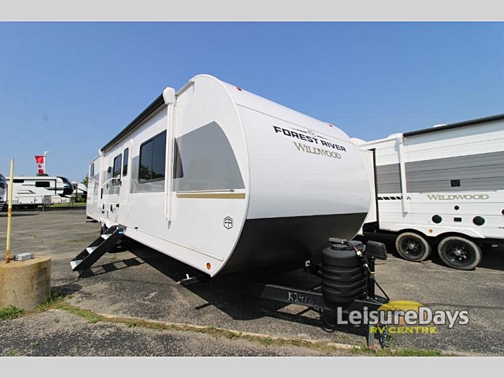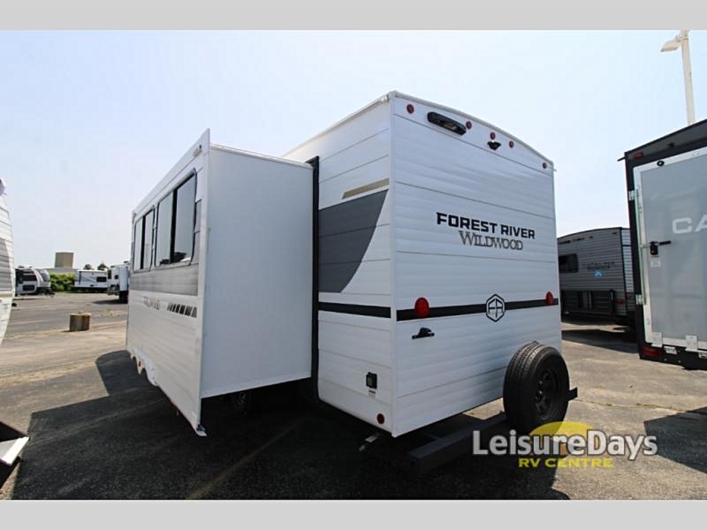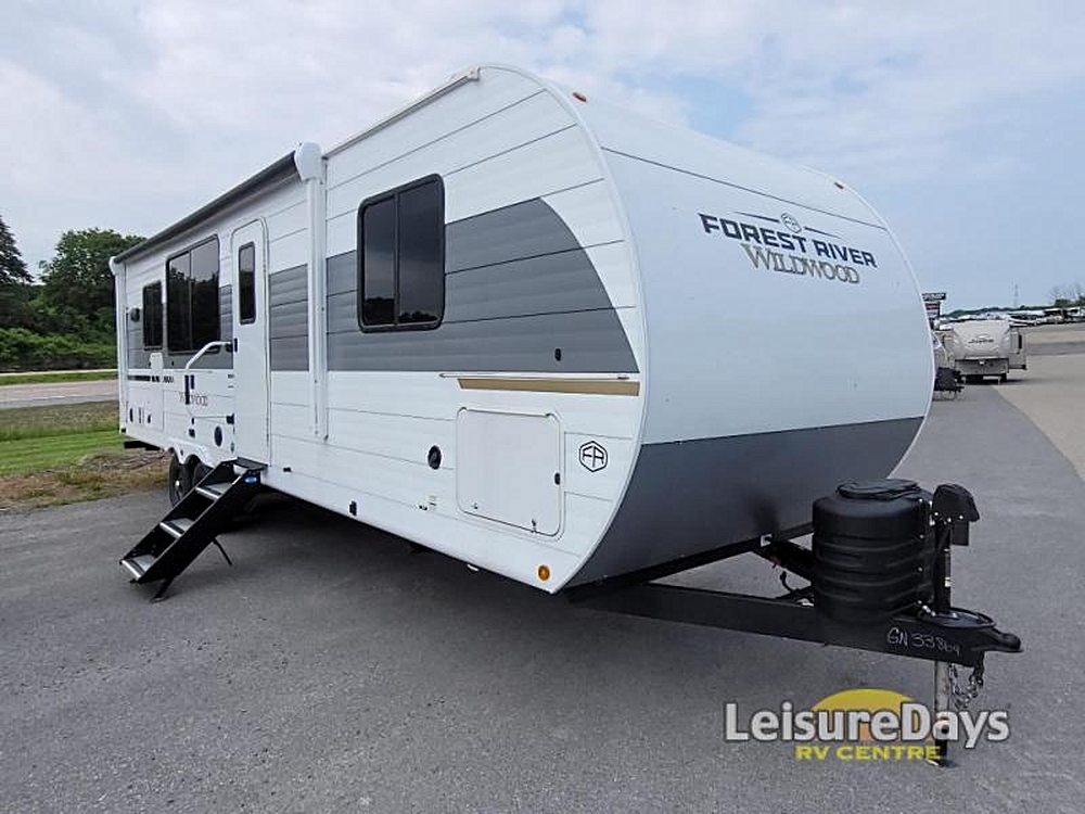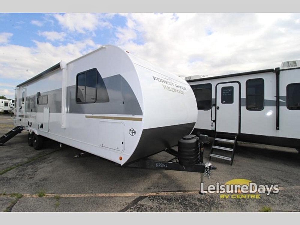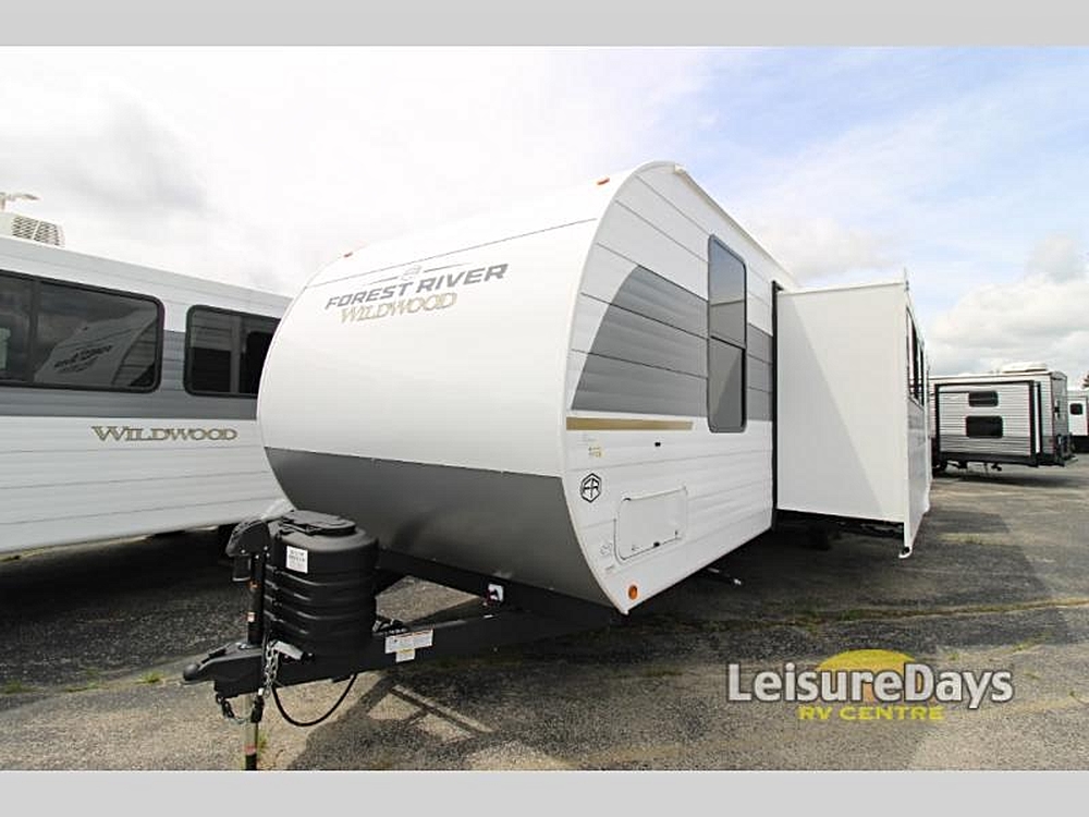 Forest River Wildwood View travel trailer 28VIEW highlights: Island with Four Bar Stools Hidden Pantry Storage Oversized Refrigerator Walk-In Shower…