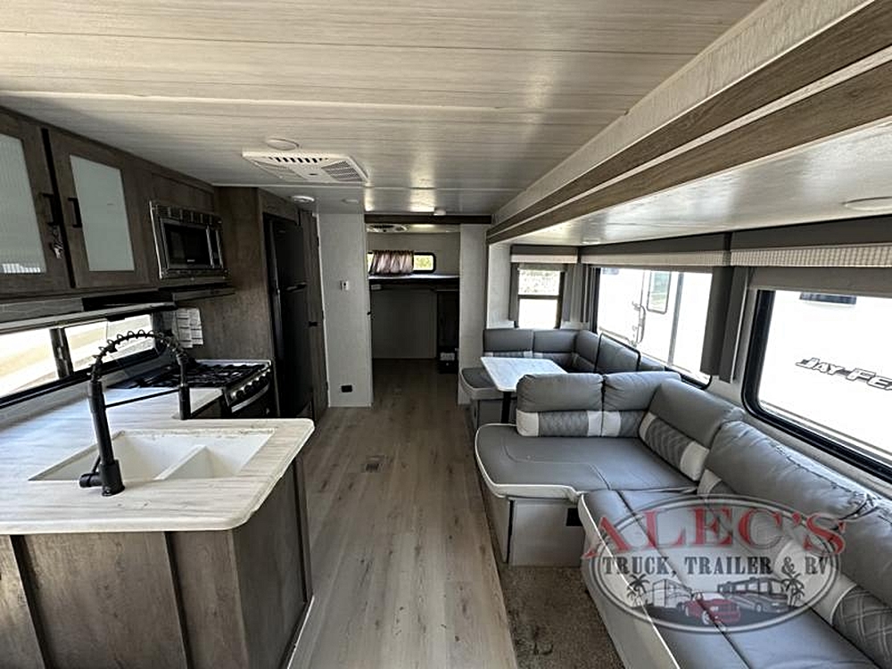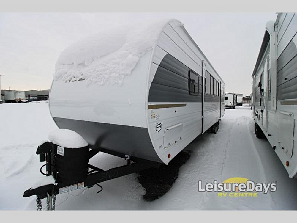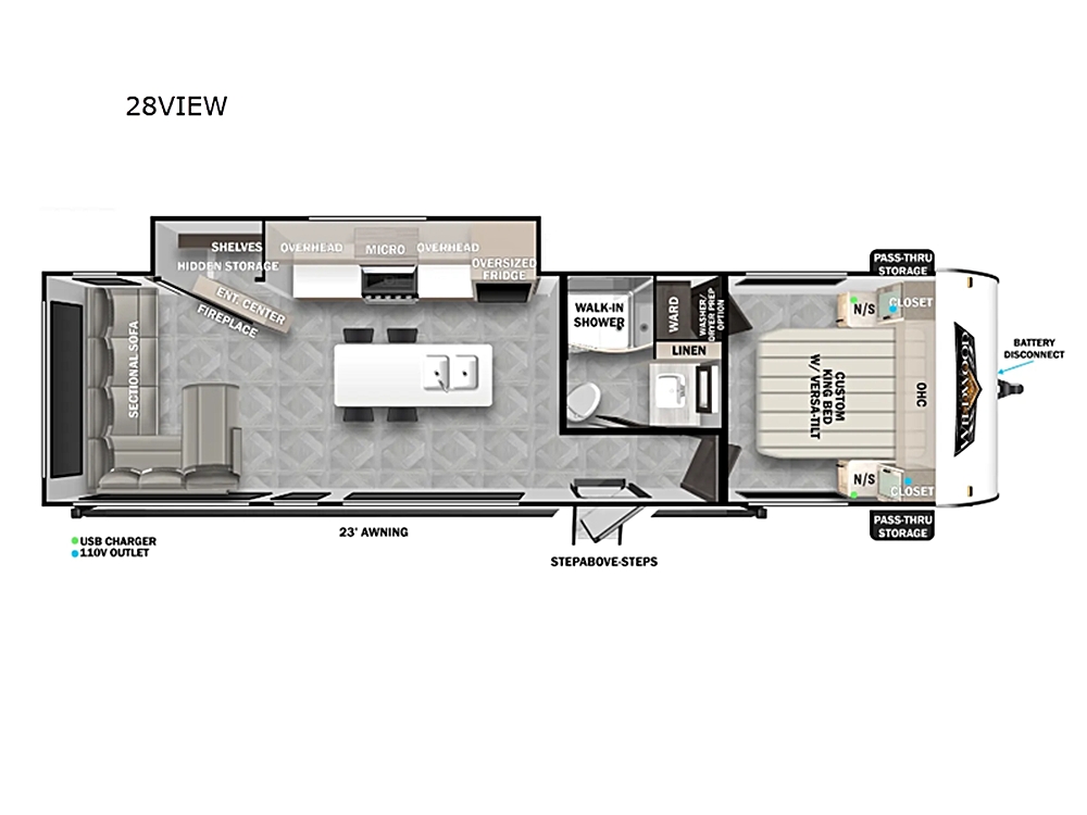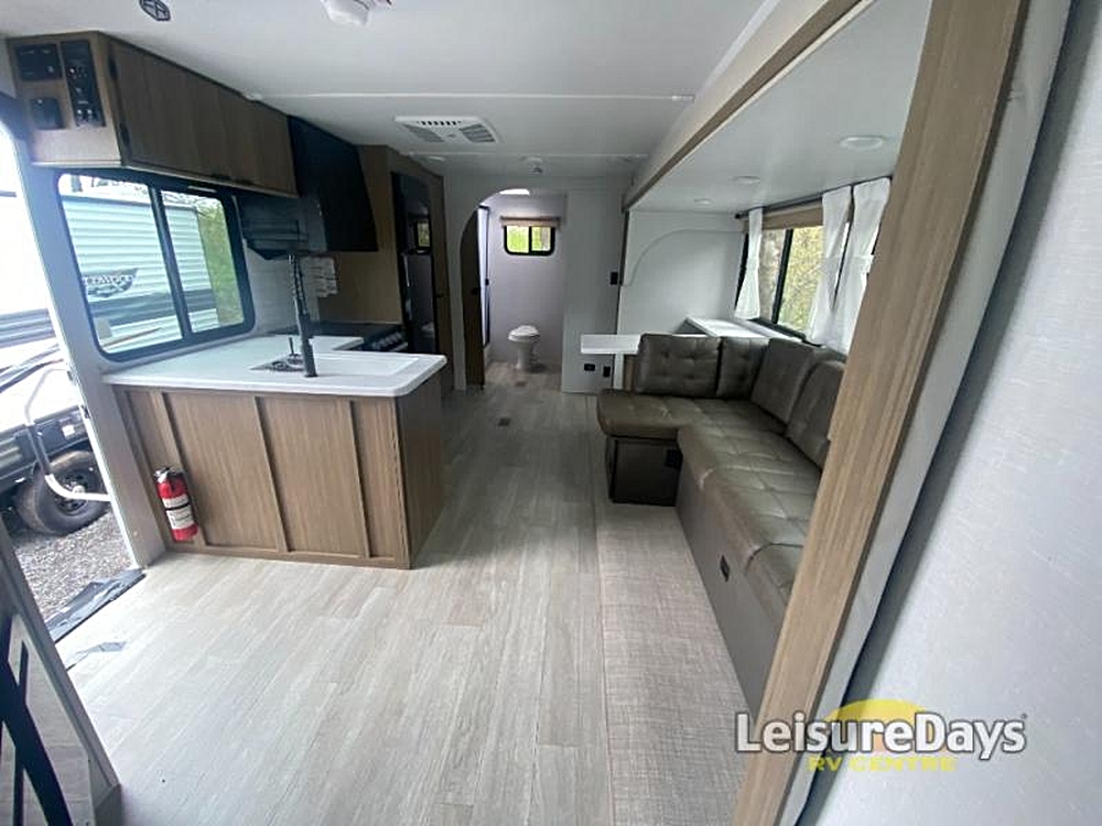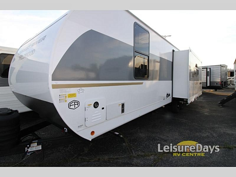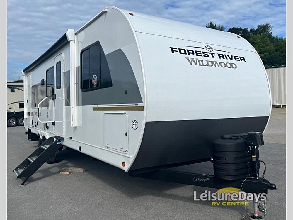 Forest River Wildwood View travel trailer 28VIEW highlights: Island with Four Bar Stools Hidden Pantry Storage Oversized Refrigerator Walk-In Shower…